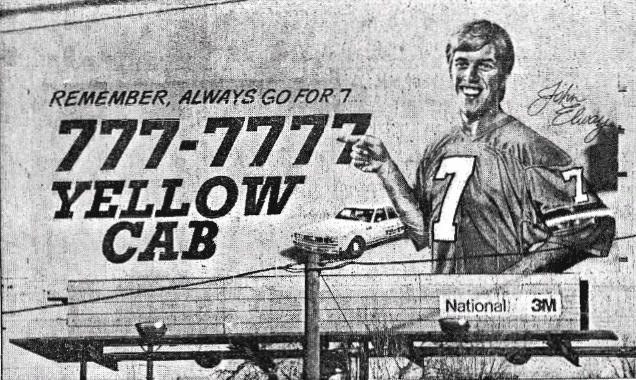 Strategy: Advertise the unforgettable number on billboards, vehicles, matchbooks and team up with Denver's "Most Popular Number 7", Quarterback John Elway to promote the company.
